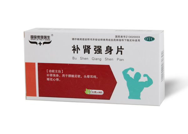 【成 份】淫羊藿、菟絲子、金櫻子、女貞子、狗脊(燙)。輔料為:蔗糖、硬脂酸鎂、低取代羥丙纖維素。 【性 狀】本品為糖衣片,除去包衣后,片芯呈灰至棕灰色,氣微,味淡。 【規(guī) 格】每片重0.3克。 【包 裝】鋁箔包裝,每板12片,每盒4板。 【用法用量】口服,一次5片,一日3次。 【貯 藏】密封。 【不良反應(yīng)】尚不明確。 【禁 忌】?jī)和?,孕婦禁用。 【注意事項(xiàng)】詳見(jiàn)說(shuō)明書(shū)。【功能主治】補(bǔ)腎強(qiáng)身。用于腰酸足軟,頭暈耳鳴,眼花心悸。